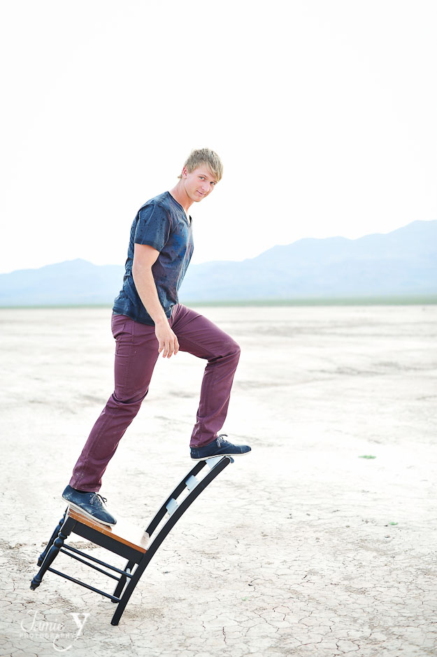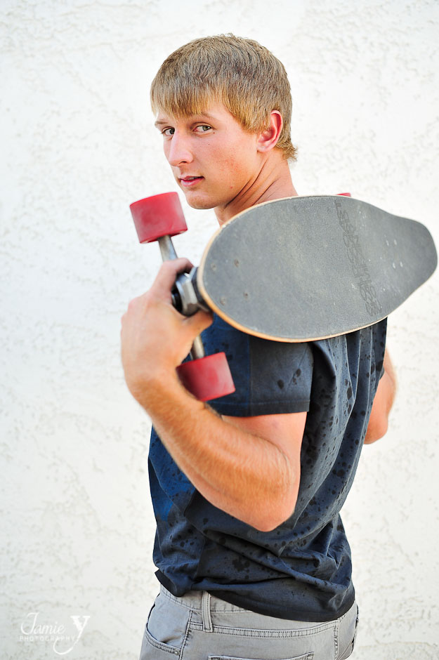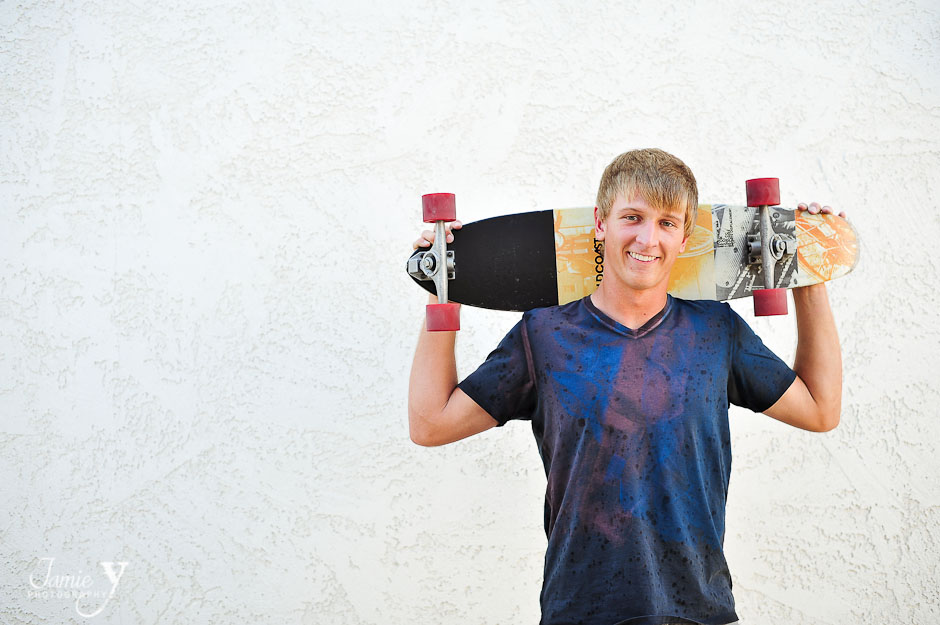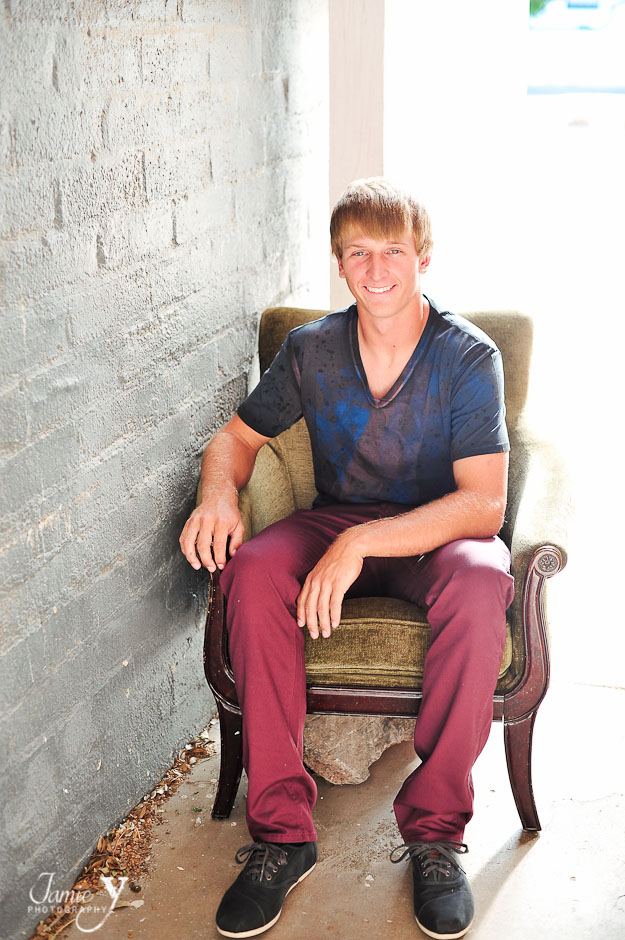 Meet DJ, a class of 2013 high school senior from Boulder City. DJ was actually my first male senior session that I photographed and it went great. DJ is a natural in front of the camera with such a great smile. We started the session in Boulder City at a local antique shop. They let us use a cool vintage chair as well as the alley in the back of their store. Then we went out front for a little big of fun with his long board.