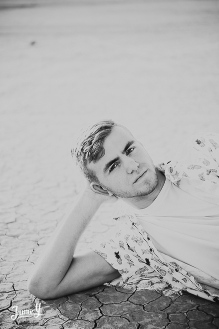 Today I am sharing these High School Senior Portraits in Las Vegas of Cole. Cole is graduating this year, class of 2018. Cole chose the dry lake bed for his senior session and it was a great choice. The dry lake bed is a great desert location choice and has beautiful light to go along with it. Cole is joining the Marines right after graduation! He brought a flag as a prop.