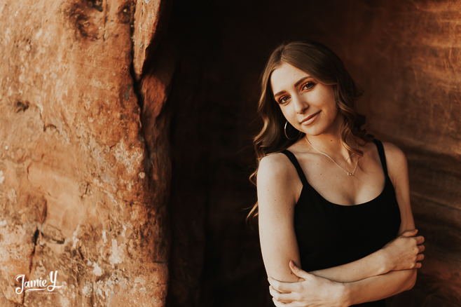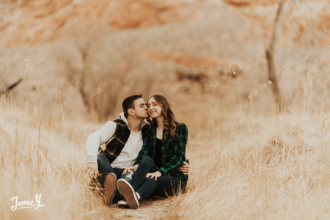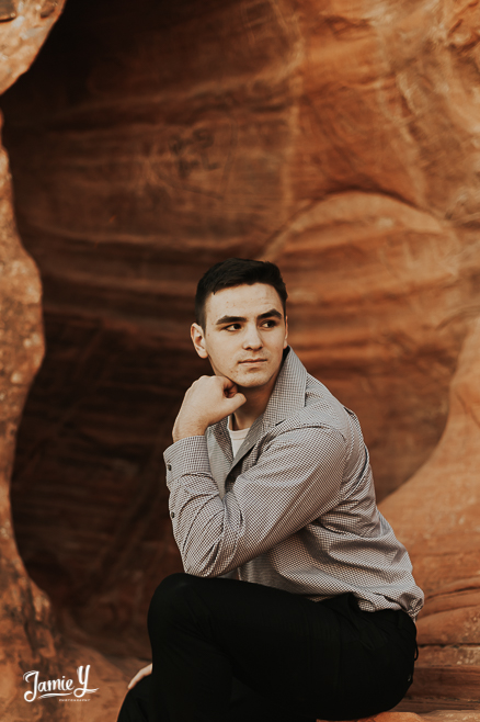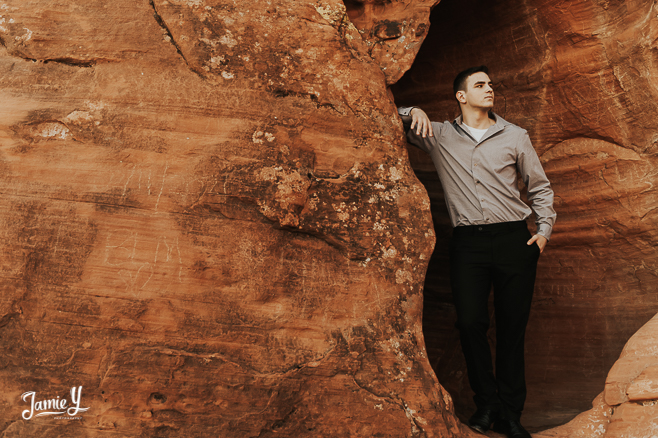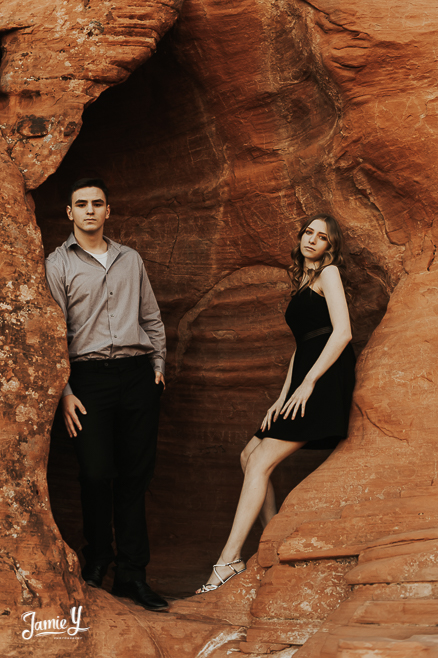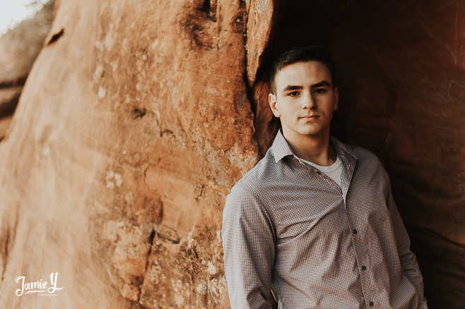 So excited to share Chase & Ashley’s Las Vegas Outdoor Senior Portraits. Chase & Ashely are a couple and wanted to get their photos done together. They chose a nature setting with some red mountains in the background.