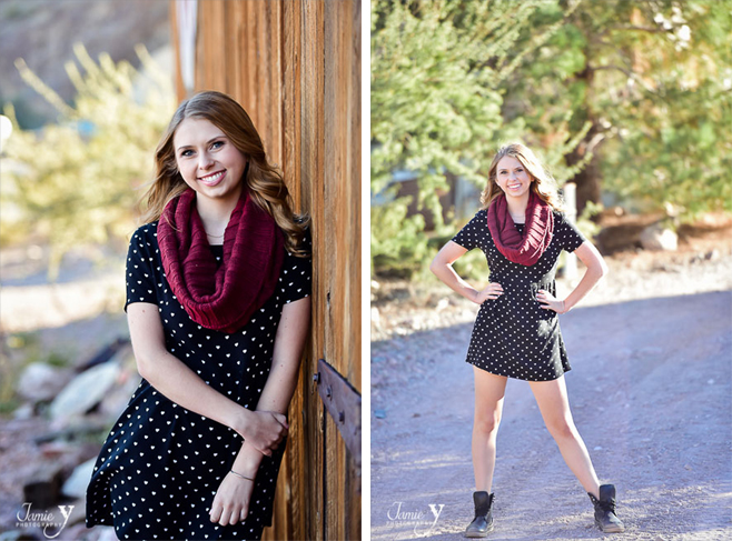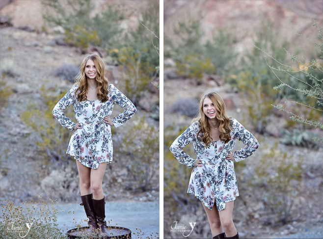 I just love love photographing high school seniors. I am also so lucky that all the most beautiful seniors in Las Vegas just so happen to pick me to be their photographer. Meet the gorgeous Emma! She is a class of 2015 High School senior. She wanted to do her photo shoot at the always amazing Nelson ghost town just outside of Las Vegas. She brought 3 fun outfits that all looked amazing. I bet anything she puts on looks amazing. I was joking around that her hair was changing colors to match her outfits. Whenever she changed, and the daylight changed, her hair looked a different color. It varied from blonde, to brown, to even red.