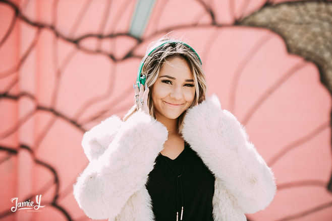 I have been so lucky these last few weeks and have been able to photograph some of the coolest high school seniors from Las Vegas. Kennady is graduating high school this year and she is oh so fun and wonderful. We chose the arts district in the downtown las vegas area for her portraits. It seemed like the perfect match with the outfit styles we had picked out. I brought a fur coat to kick things up a notch and add a really cool funky element to her look. The shoot went AMAZING. I had so many favorites, I had to narrow it down and this is the best it got. There are a lot of photos here but they are pretty cool so I am not sorry. Senior Pictures are one of my favorite things to photograph.