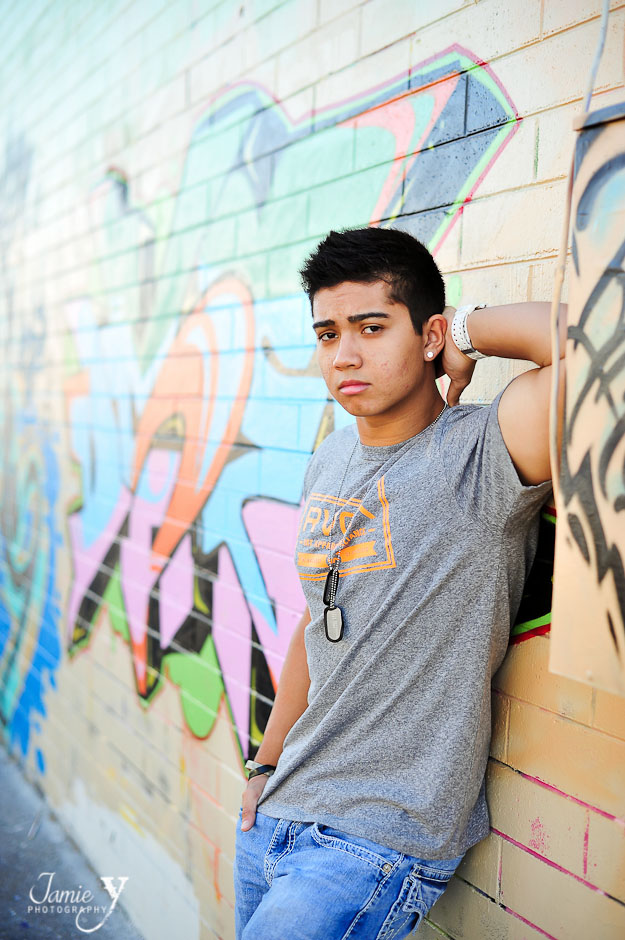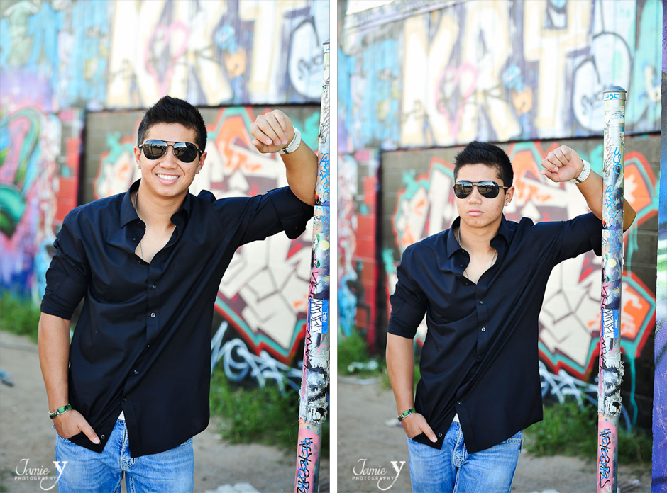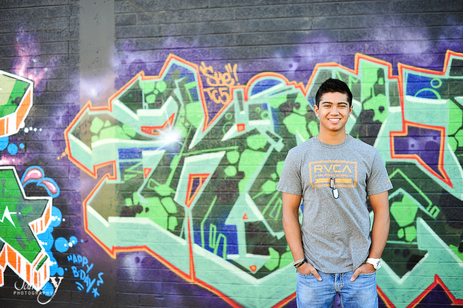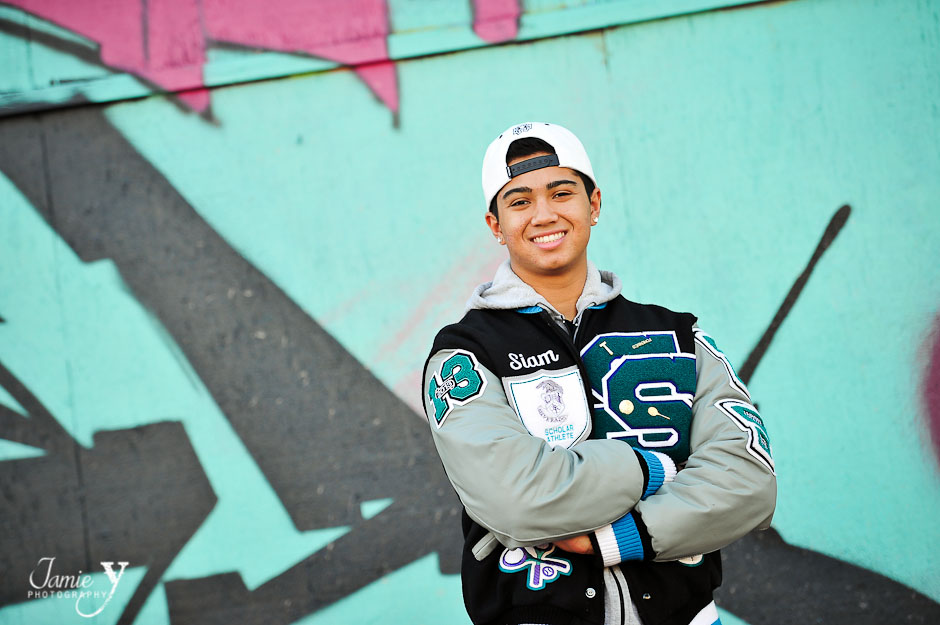 Siam is a class of 2013 high school senior from Las Vegas that I had the pleasure of photographing. After looking at some pictures from the arts district downtown, he knew that it would be the perfect spot for his photos. The arts district is full of colorful graffiti and lots of cool urban alleyways. Siam brought a few outfits that went perfectly with his personality and the location. We ended the session with some pictures in his Letterman’s jacket of course.