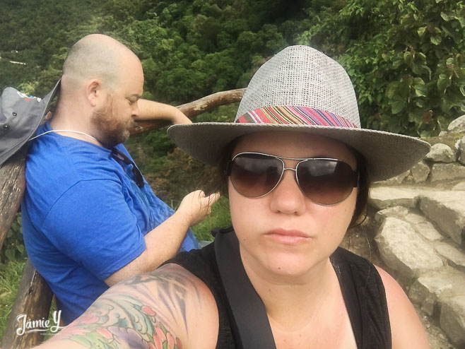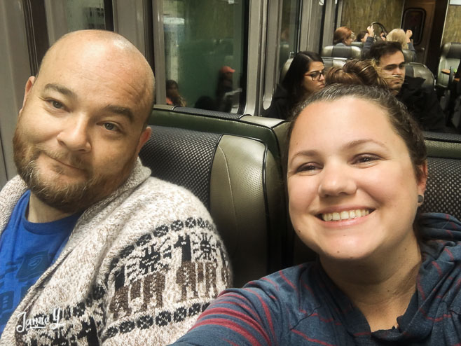 Selfi on the train to Machu Picchu, we were so excited. We brought a selfie stick but it broke and we didn’t get much good use out of it. The train ride was about an hour and a half through the Andes mountains. You could just stare out the window for days.