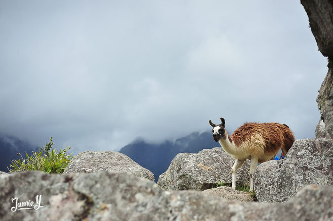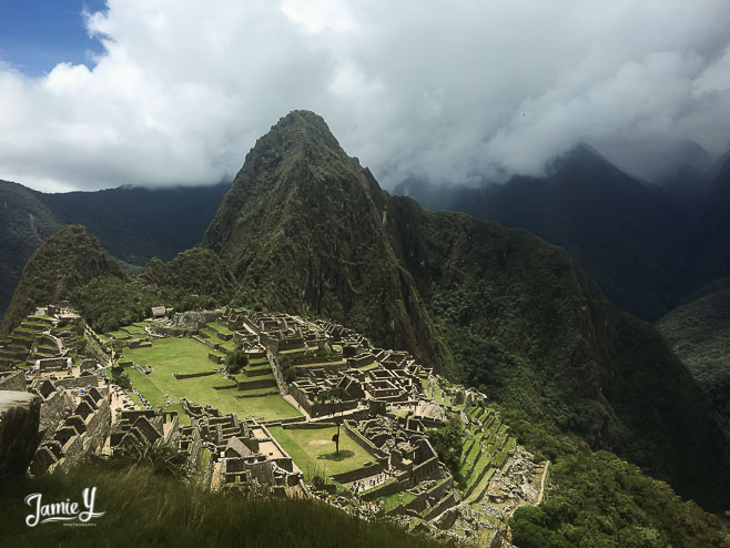 Above is the sight as you exit the train in Aguas Calientes. You then take a bus for 30 minutes all the way up a mountain to get to Machu Picchu. That bus ride was terrifying. You go up so high and the bus is wobbly and there are huge drop offs just outside the window. But, it was worth it, to see this…